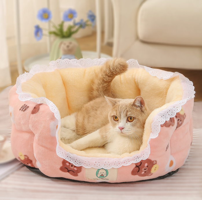 Lit grotte pour chat chaud, confortable et amovible, intérieur