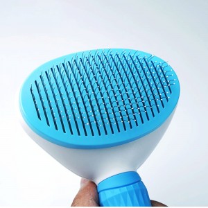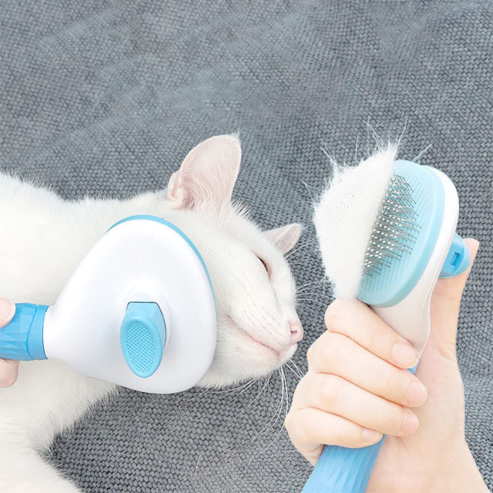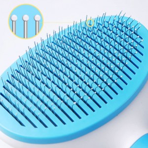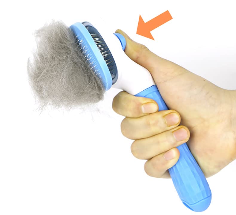 - 【Tombol Pembersih Sekali Klik】Setelah menyikat hewan peliharaan Anda, cukup klik tombolnya.Penutupnya akan keluar, memisahkan rambut yang disisir dari jarum logam, lalu menyeka rambut tersebut.Tombol sikat penumpahan kucing pada gagangnya menghemat waktu dan tenaga saat merawat dan membersihkan.