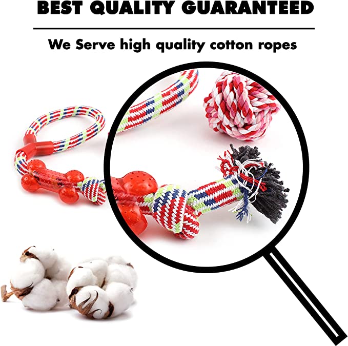 Durable Dog Toys for Aggressive Chewers of All Life Stages- Our strong dog toys are great for all ages and sizes from puppy teething toys to super chewer dog toys and adult dog toys. This tough dog toys pack of rope dog toys has nearly indestructible dog toys for aggressive chewers. While these are best suited as dog toys for medium dogs, they also make great big dog toys and toys for small dogs. See measurements of all rope toys in photo