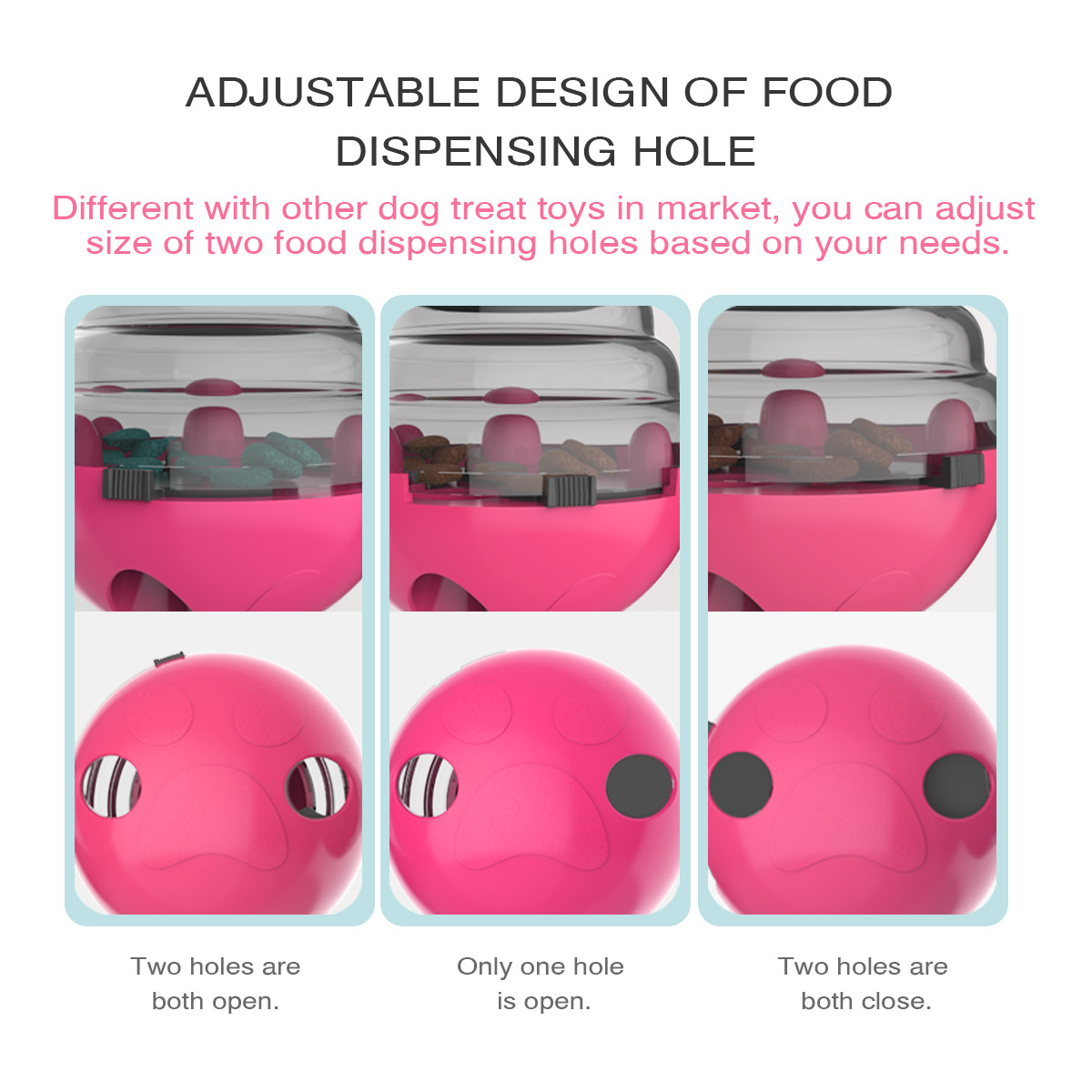 • The dog tumbler toy with food dispenser can control food amount and help your lovely pets increase their IQ, relieve anxiety. The treat ball can be used as a slow feeder for cat or dogs. It can be used as a play toy, the tumbler design allows pets to move and play freely, it will keep standing up no matter how pets roll it.